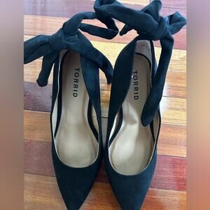 Torrid Black Suede Bow Pointed Toe Pumps Holiday Party Heels 8W Wide 3” High