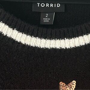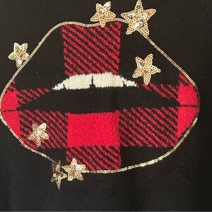 Torrid Black Sweater Size 2 Sequin Star Plaid Lip Graphic Pullover Embel…