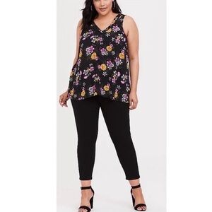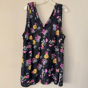 Torrid Black Tank Top with Pink and Yellow Floral Pattern Size 4/4X