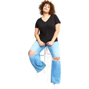Torrids Deep Black Sleek Girlfriend Signature Jersey Short Sleeve V-neck tee. Ideal for casual wear. Soft and comfortable fabric will be your go to comfy tee.