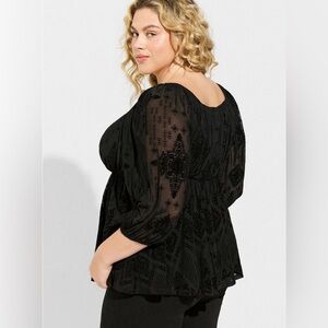 Torrid Black Lace Flocked Mesh Square Neck Puff Sleeve Peasant Top