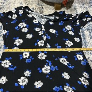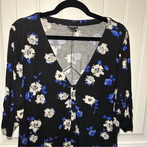 Torrid Black White & Blue Floral V-Neck Short Sleeve Blouse Size 3X