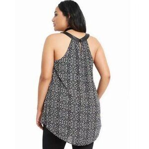 Torrid Black White Floral Leather Halter Hi-Lo Hem Lined Sleeveless Top - Size 2