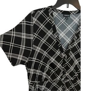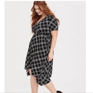 Torrid Black White Plaid Button Front Midi Challis Dress Pockets 1X Sharkbite