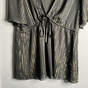 Torrid Black With Gold Metallic Stripes Cinched Blouse Size 1X