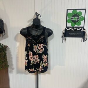 Torrid Black and Pink Blouse with Elegant Floral Design 1X