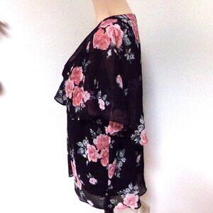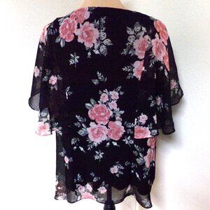 Torrid Black and Pink Floral Blouse Size 1 Very good condition with no rips or stains Smoke free Home Happy Shopping