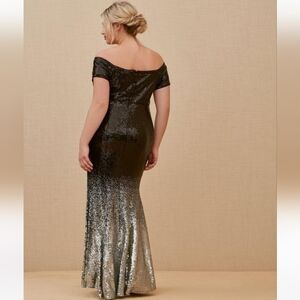 Torrid Black and Silver Ombre Detail Sequin Maxi Sequin Off Shoulder Dress