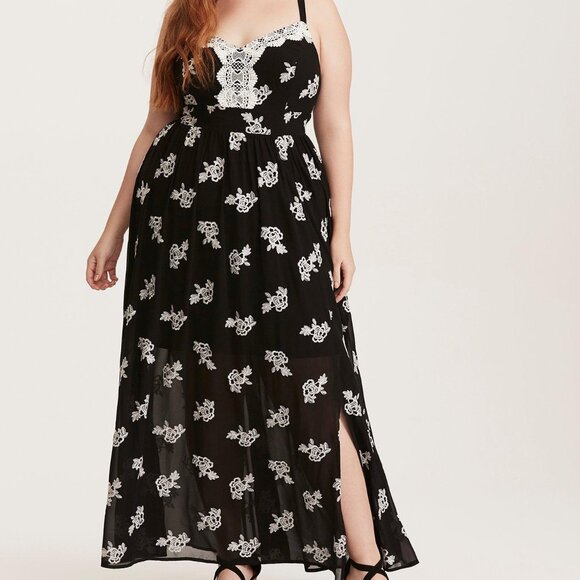 Torrid Black and White Chiffon Embroidered Maxi Dress Size 2X EUC