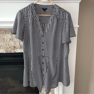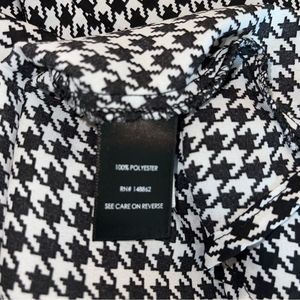 Stylish houndstooth pattern. Short sleeves. Front tie detail. Perfect for casual or office wear.