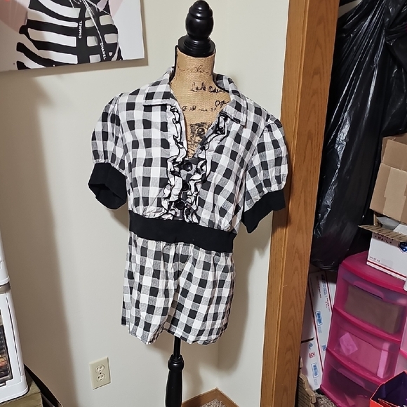 Torrid Black and White Plaid Short Sleeve Top. Size 3.