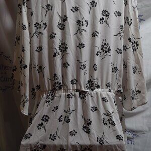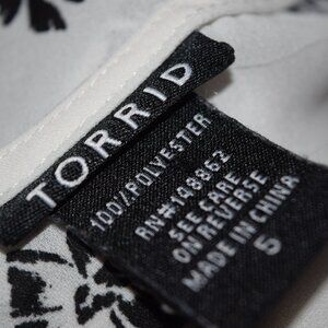 Torrid Black & white Floral Faux Wrap Blouse, Size 5