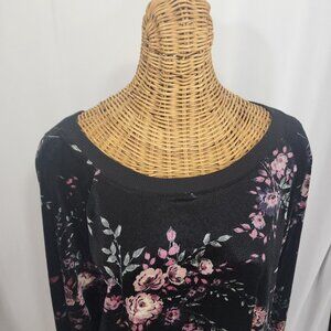Torrid Black with Floral Print, Velvet Like (polyester blend). Sweatshirt Size 1 TORRID (1X)