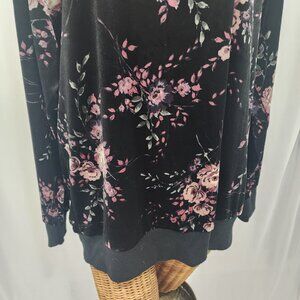 Torrid Black with Pink Floral Print, Velvet Like, Sweatshirt Size 1 TORRID (1X)