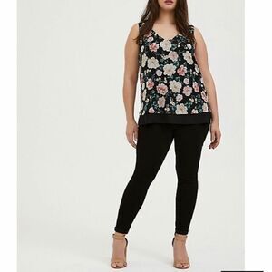 Torrid Black Floral Chiffon Double Layer Tank Sz 1