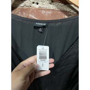Torrid Black Peplum Satin Smocked Waist top sz 4 4X V Neck Satin Whimsigoth NWT