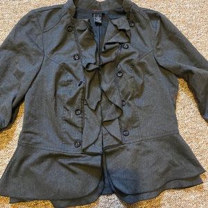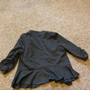 Torrid Grey Blazer worn about twice. Has a small stain but will wash before sending. Doesn't fit anymore because I lost some weight. Perfect for parties.