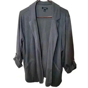 Torrid Blazer Womens 3X Gray Jersey Knit Open Front Tab Sleeve Pockets Career