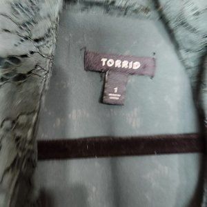 Torrid Blazer Women's Size 1 Dark Green Lace Open Front Jacket Long Sleeve