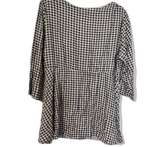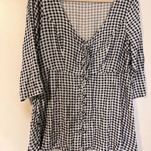 Torrid Blouse 1X Blue White Gingham Check V-Neck 3/4 Sleeve Cottagecore Bohochic