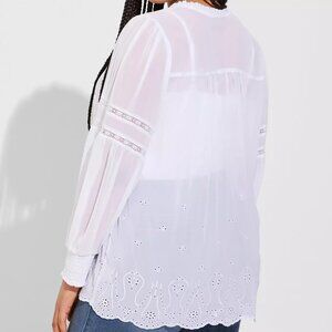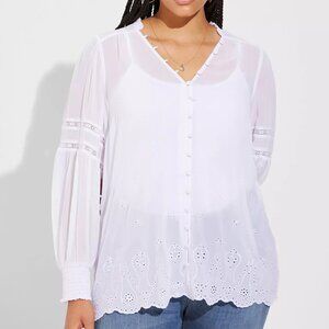 Torrid Blouse Chiffon Eyelet Embroidered Plus Size 3 Sheer White Button Up