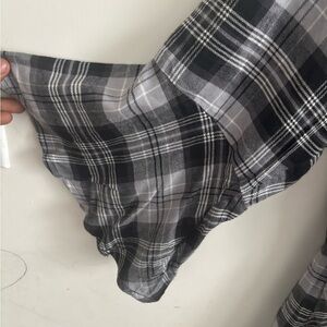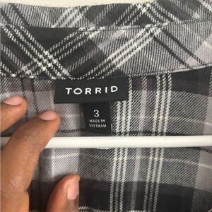 Torrid Blouse Flowy 3X Flannel Plaid Babydoll Button up whimsy black white Boho