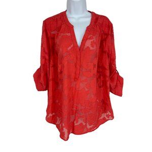 Torrid Blouse Harper Chiffon Clip Floral Pullover 3/4 Sleeve Sheer Coral Size 1X