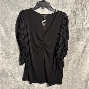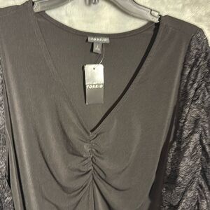 Torrid Blouse NWT Black Ruched Ruffled 3/4 Sleeve Blouse size 1 women’s 14 / 16