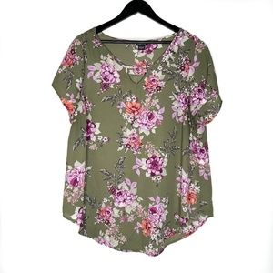 Torrid Blouse Olive Floral Keyhole Georgette Blouse Short Sleeve