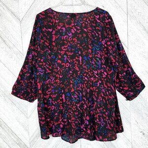 Torrid Blouse Plus Size 1X Peplum Tie Knot Front 3/4 Sleeve V-Neck Pink Multi