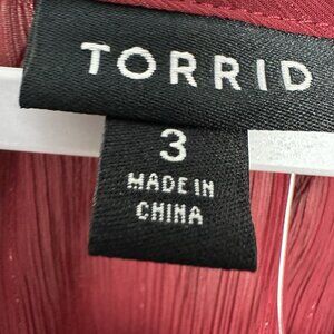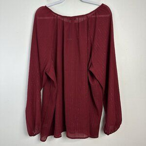 Torrid Blouse Red Chiffon Tie Front Long Sleeve Womens Plus 3x Holiday Metallic