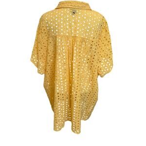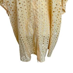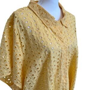 Torrid Blouse Shirt Coverup Size 5 5X Yellow Eyelet Button Up Collar Tunic Top