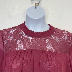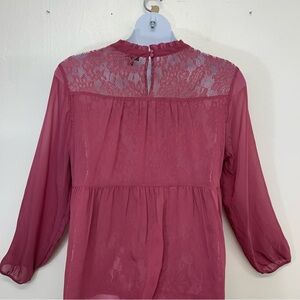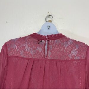 Torrid Blouse Top 2X Pink Tiered Floral Embroidery Long Sheer Sleeve Fairy Boho