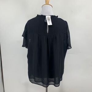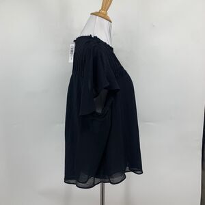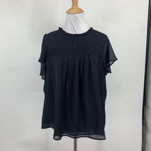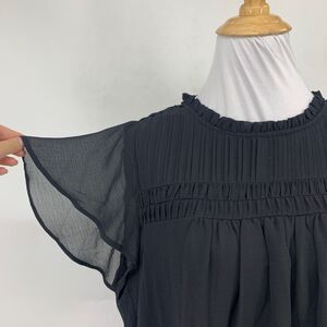 TORRID BLOUSE WOMEN 00 M/L BLACK CHIFFON SMOCKED PIN TUCK FLUTTER SHORT SLEEVE