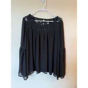 Torrid Blouse Womens 1 Black Lace Chiffon Overlay Boho Peasant Sheer Bell Sleeve
