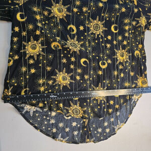 Torrid Blouse Women's 1X Black Gold Moon Print Long Sleeve Tie Mock Neck NWT
