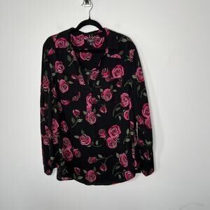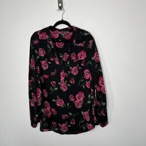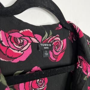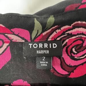 Torrid Blouse Womens 2 2X Black Pink Rose Floral Harper Long Sleeve V Neck Plus