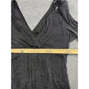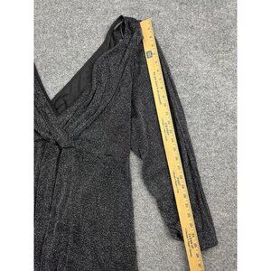 Torrid Blouse Womens 5X Black Silver Metallic Wrap Tie Waist Long Sleeve Lined