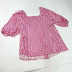 Torrid Blouse Womens 5X Gingham Button Up Long Sleeve Sweetheart Neck Top New
