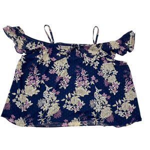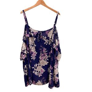 Torrid Blouse Womens 6X Blue Floral Top Cold Shoulder Flowy Fairy Bloomcore