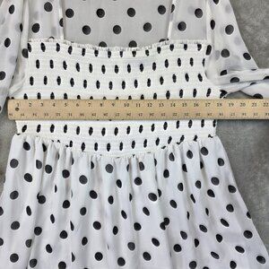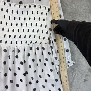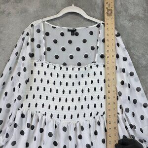 Torrid Blouse Womens Plus 2X 2 White Black Polka Dot Smocked Peplum Sheer Top