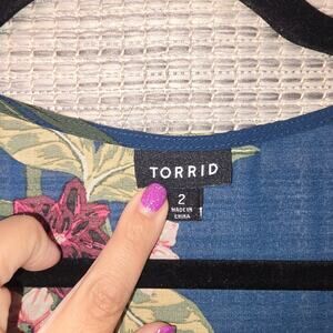 Torrid Blouse Womens 2X Blue Floral Short Sleeve Button Front High-Low Boho