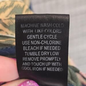 Care: Machine wash cold with like colors, gentle cycle, tumble dry low, cool iron if needed