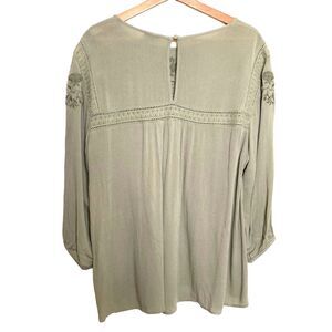 Torrid Blouse Womens Size 2X Plus Green Embroidered Floral Long Sleeve Top