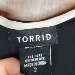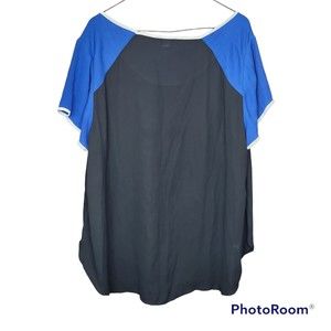 Torrid Blue And Black Colorblock Short Sleeve Chiffon Top White Trim Size 2X