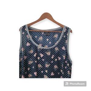 Torrid Blue AndWhite Polka Dot And Floral Print Long Tank Size 3X 22/24.