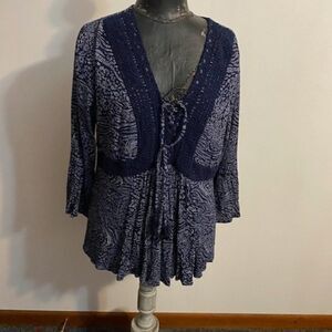 Torrid Blue Baby Doll Gauze Crochet Trim Lace top, size 1X