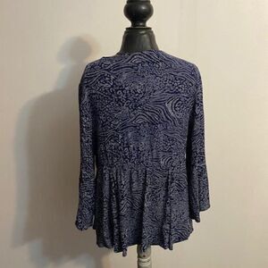 Torrid Blue Baby Doll Gauze Crochet Trim Lace 3/4 sleeves top, size 1X (100% Rayon)