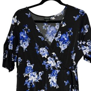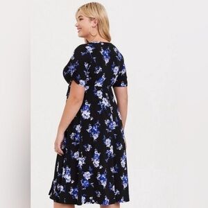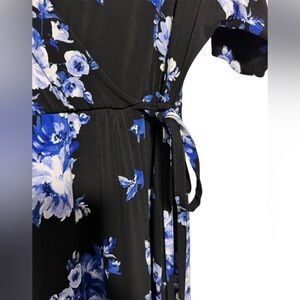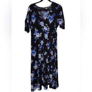 Torrid Blue & Black Floral Faux-Wrap Midi Dress - Size 1X