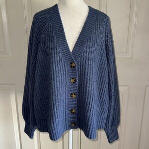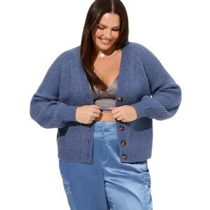 Torrid blue cardigan button front sweater. Size 0 = US 12. 24” armpit to armpit laid flat. 23 1/2” shoulder to hem. Very good pre owned condition
